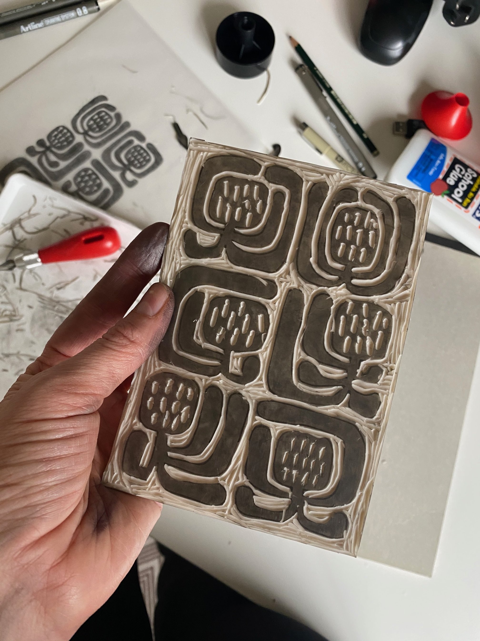 Ali thrives in her home studio, designing unique patterns and lino prints. When she’s not creating, she enjoys family time and escaping into books of all genres that spark her imagination.