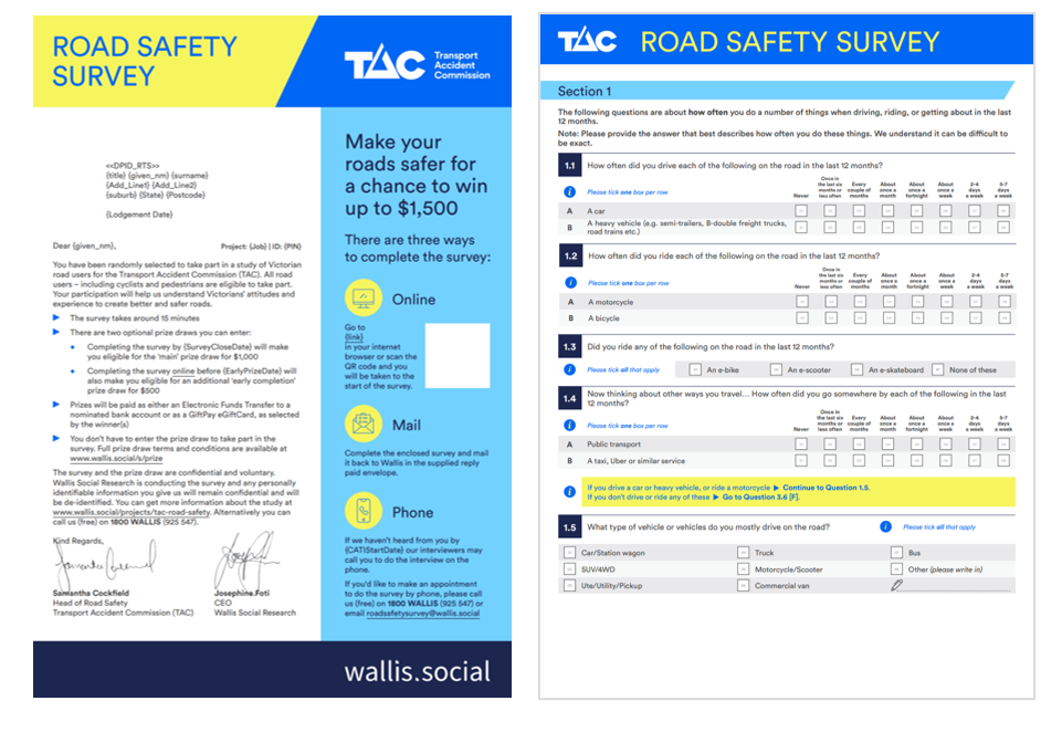 Victorians who hold, or have held, a licence or learners’ permit or registered vehicle are randomly selected from the VicRoads Registration and Licencing database to take part.